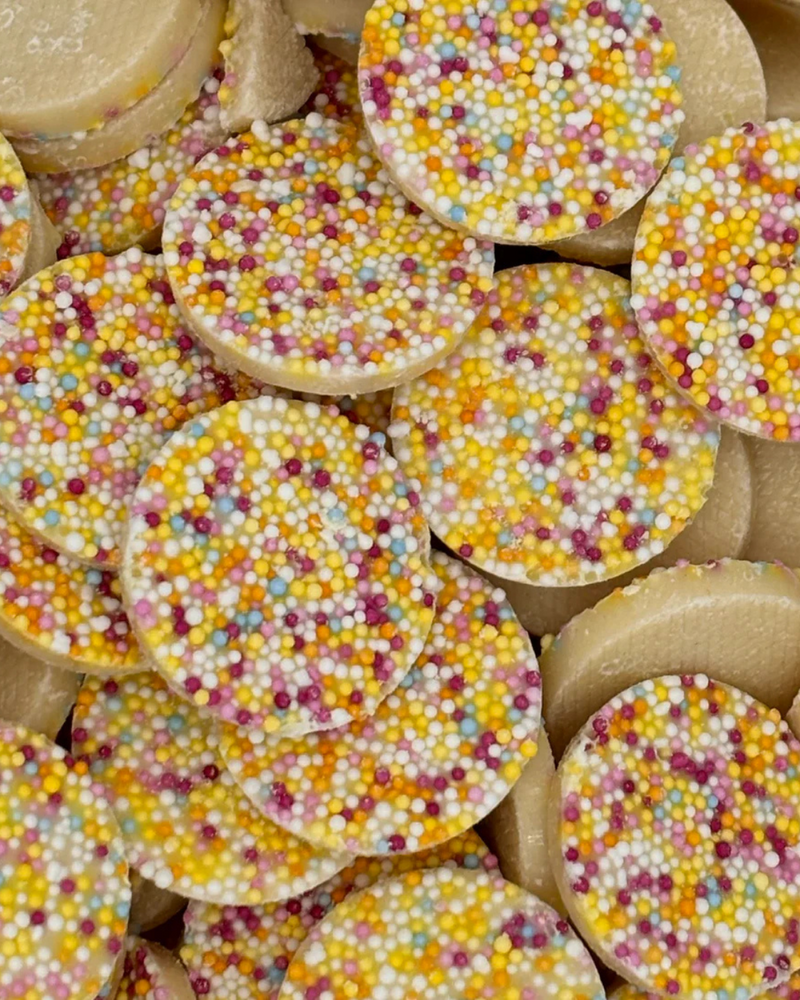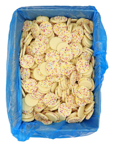 HANNAHS MEGA Snowies are the ultimate upgrade on the classic sweetshop favourite! These oversized white chocolate-flavoured discs are topped with crunchy, colourful sprinkles for a satisfying mix of creamy and crispy textures. Bursting with nostalgic charm and bold visual appeal, MEGA Snowies are perfect for pick ‘n’ mix lovers who enjoy a bigger bite of retro sweetness. Ideal for party bags, sweet jars, or simply indulging in a classic treat with a mega twist.