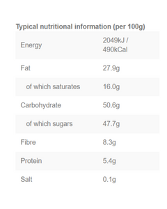 Milk Chocolate (87%), (Sugar, Cocoa Butter, Skim Milk Powder, Cocoa Mass, Whey (Milk), Vegetable Fat (Palm Oil SG), Full Cream Milk Powder, Butter Oil (Milk), Emulsifier: Rapeseed Lecithin E322), Coffee Beans (13%), Glazing Agents: Gum Arabic E414, Shellac E904),