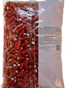 Delight in the fruity fun of Vidal Mini Strawberry Pencils! These adorable pencil-shaped sweets are packed with juicy strawberry flavour and feature a soft, chewy texture with a creamy fondant centre. Perfectly sized for snacking, party bags, or adding a pop of colour and flavour to your pick ‘n’ mix selection.