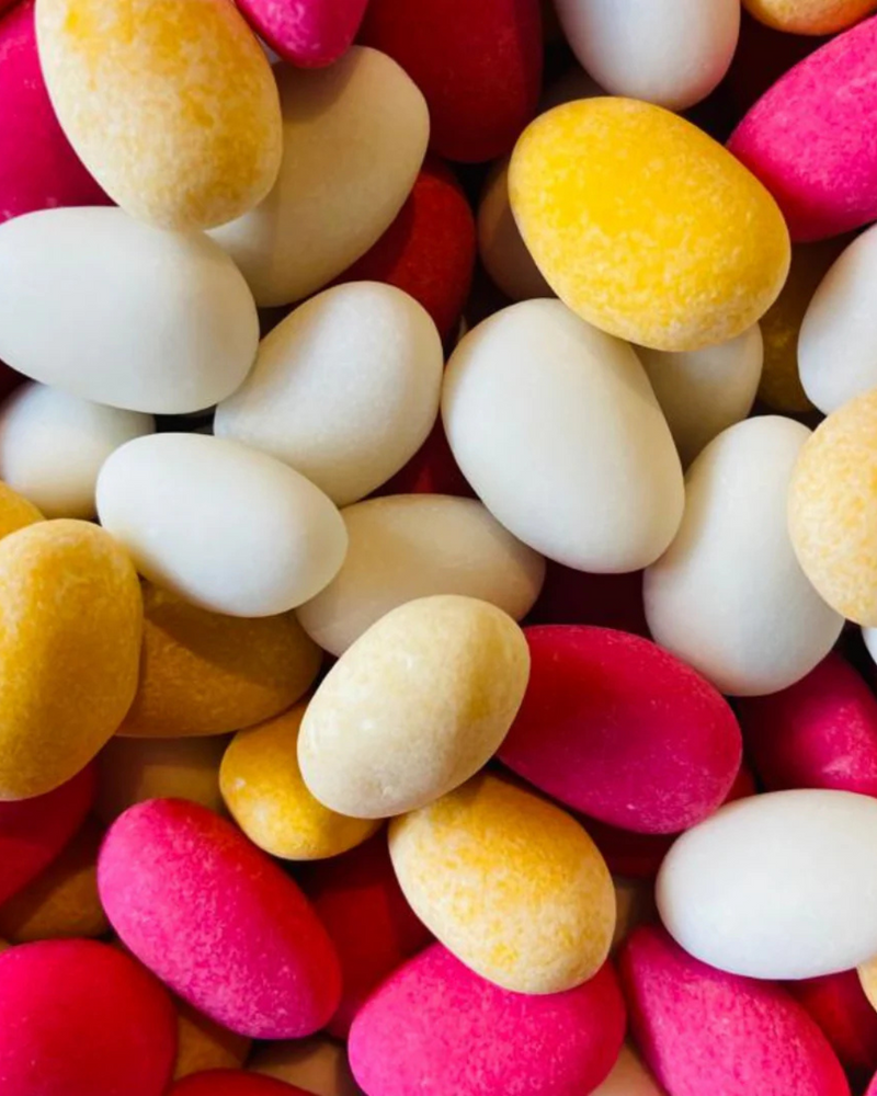 Sugared Almonds are a timeless confectionery classic, featuring crisp sugar-coated shells wrapped around crunchy whole almonds. With their elegant pastel colours and satisfying crunch, they’re a popular choice for weddings, christenings, party favours, or simply as a sweet treat to enjoy. These traditional sweets offer a delightful balance of nutty richness and sugary sweetness—perfect for both gifting and personal indulgence.